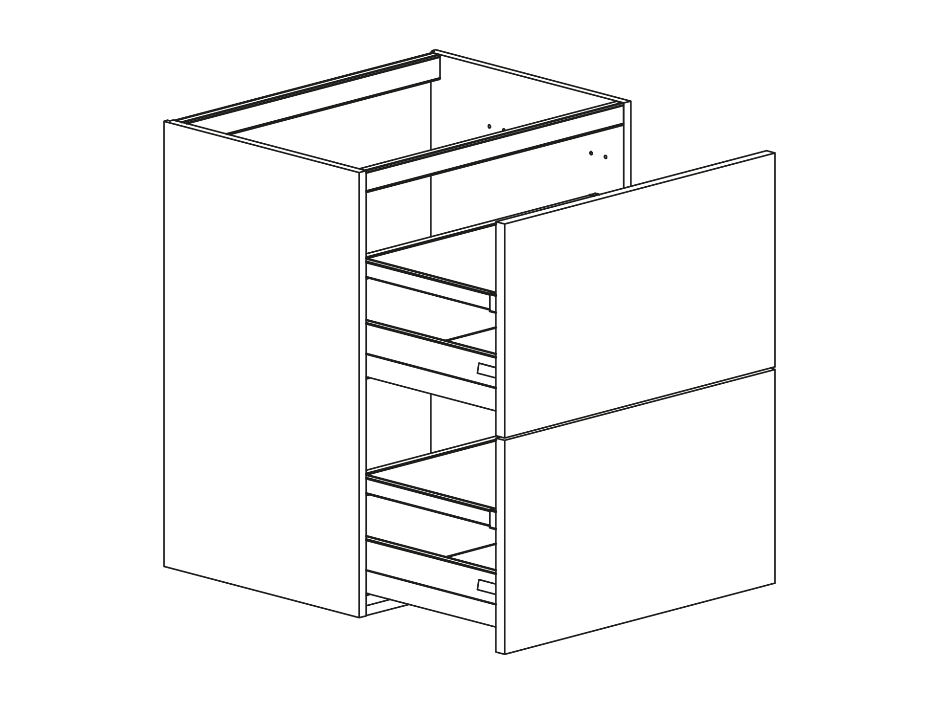 Bänkskåp med DUO lådor, höjd 720 djup 430