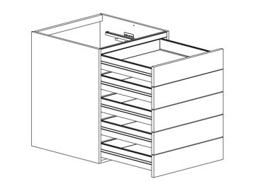 Bänkskåp med fem fullutdragslådor, välj One låddjup 500 mm- eller Scalalådor djup 550 mm. Välj front och utförande. Skärbräda kan väljas till. Barnspärr 30736 ingår. Skåpet finns i flera bredder.