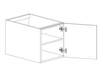 Bänkskåp med lucka och en hylla, välj höger- eller vänsterhängd lucka (bredd 800 mm har parluckor). Välj front och utförande. Skåpet finns i flera bredder.