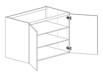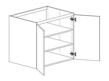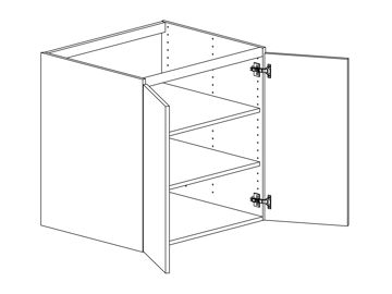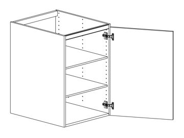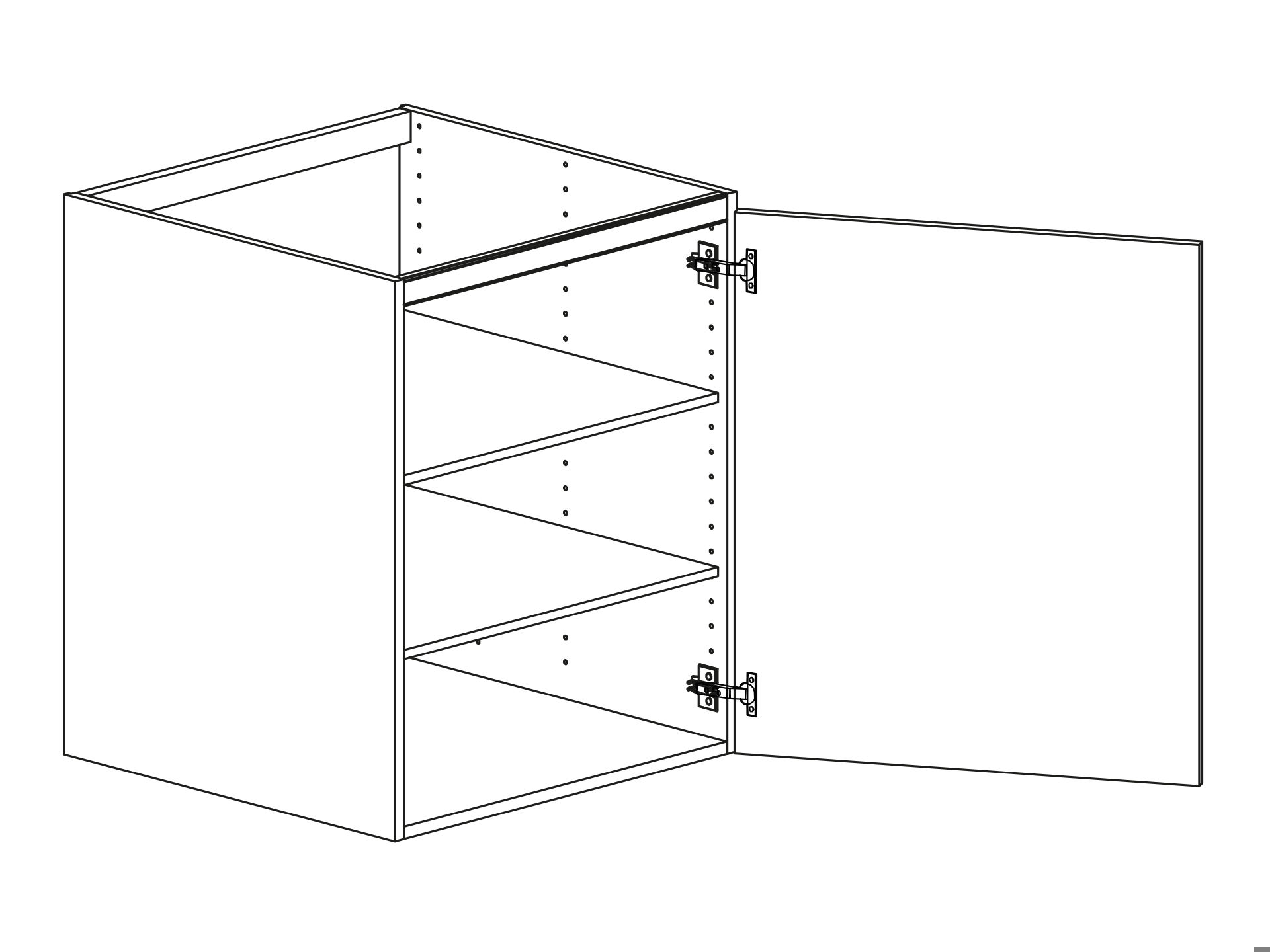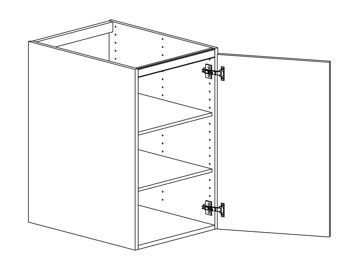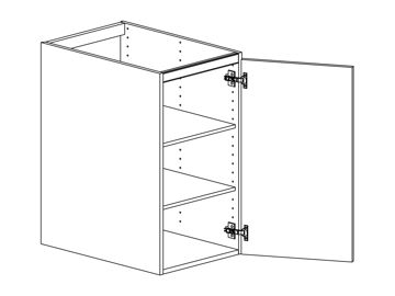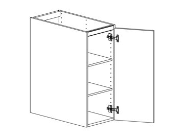 Bänkskåp med lucka och två hyllor, välj höger- eller vänsterhängd lucka (bredd 800 - 1000 mm har parluckor). Välj front och utförande. Skärbräda kan väljas till i vissa bredder. Skåpet finns i flera bredder.