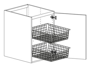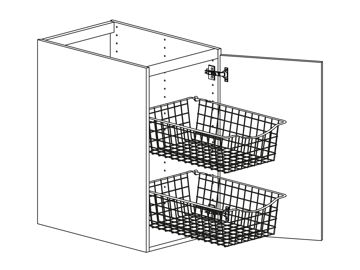 Bänkskåp med lucka och två trådbackar, välj höger- eller vänsterhängd lucka. Skärbräda kan väljas till. Välj front och utförande. Skåpet finns i flera bredder.