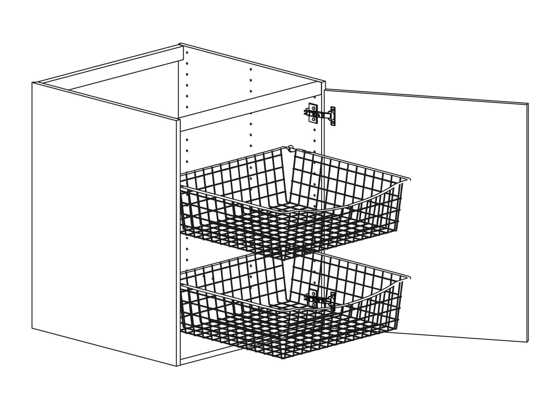 Bänkskåp med lucka och två trådbackar, höjd 720 djup 580