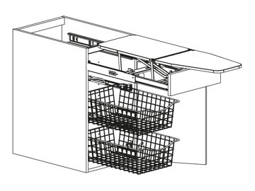 Bänkskåp med lucka, strykbräda 30501 och två trådbackar 30174, välj höger- eller vänsterhängd lucka. Välj front och utförande. Skåpet finns endast i bredd 400 mm.