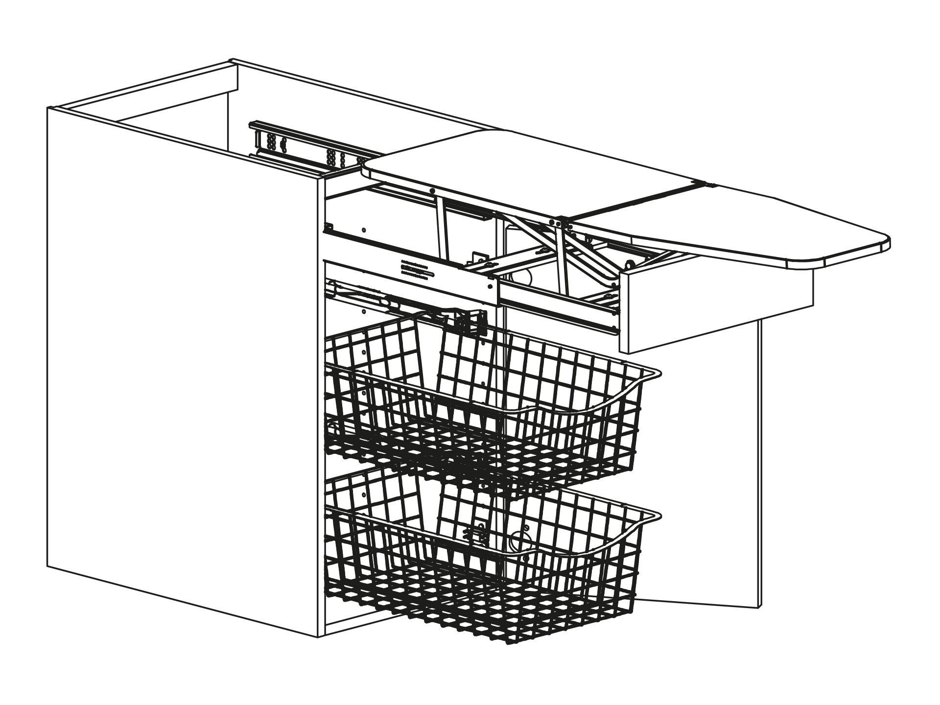 Bänkskåp med strykbräda, två trådbackar 400mm