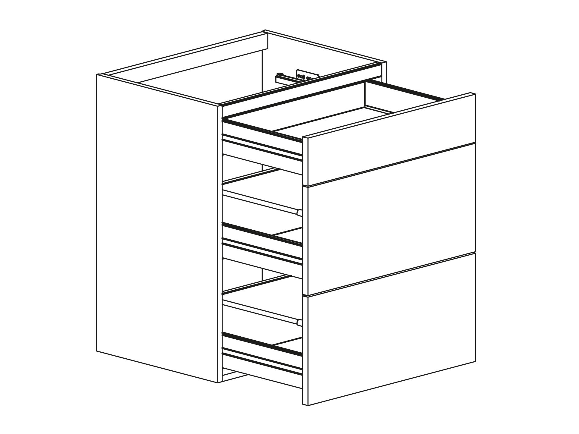 Bänkskåp med tre fullutdragslådor, välj One- eller Scalalådor. Välj front och utförande. Gummimattor ingår i två av lådorna. Skåpet finns i flera bredder.