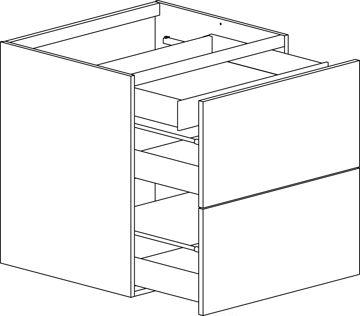 Bänkskåp med två lådor och en invändig låda 600mm, DUO-fronter