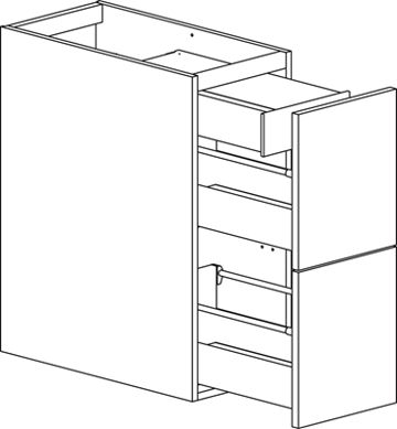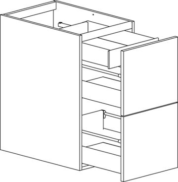 Bänkskåp med två lådor och en invändig låda 300mm, DUO-fronter