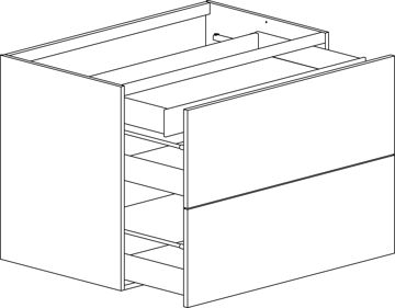 Bänkskåp med två lådor och en invändig låda 800mm, DUO-fronter