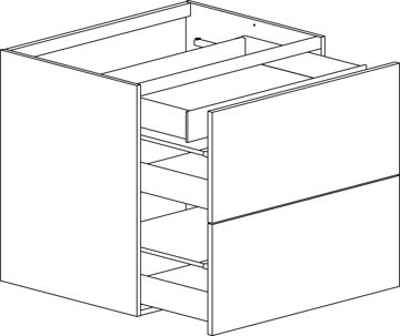 Bänkskåp med två lådor och en invändig låda 700mm, DUO fronter