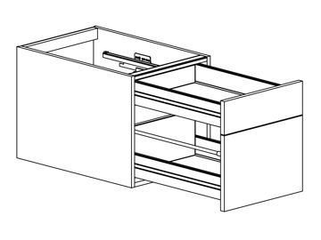 Bänkskåp med två fullutdragslådor, välj One låddjup 500 mm- eller Scalalådor djup 550 mm. Välj front och utförande. Gummimattor ingår i båda lådorna. Skåpet finns i flera bredder.