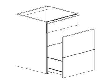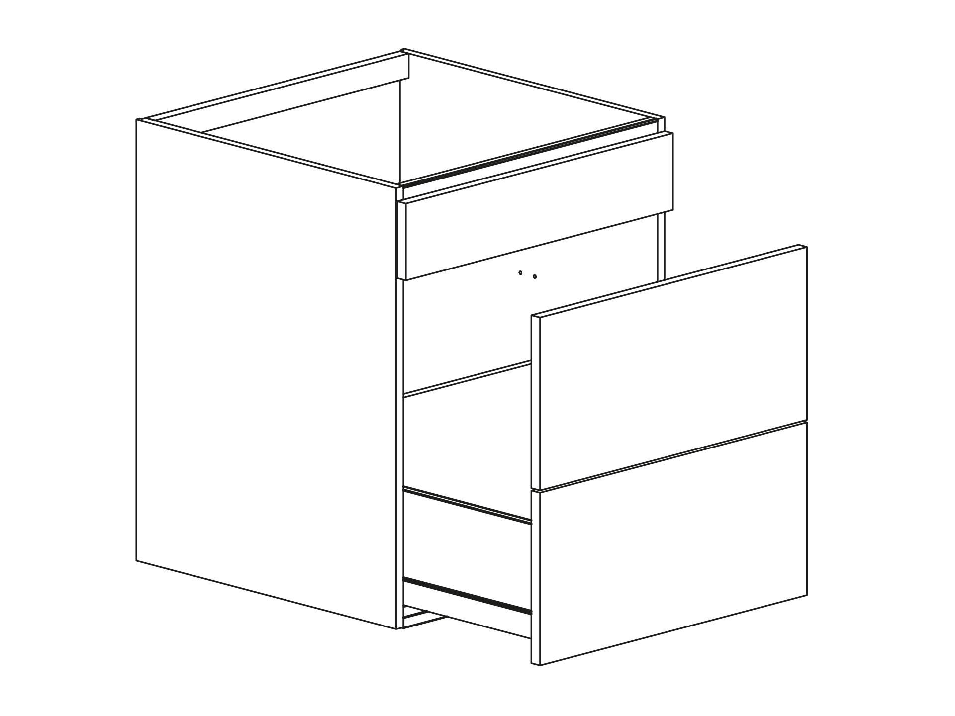 Diskbänkskåp låda Scala djup 450 mm för källsortering Ängsö. 2-delad front med blindfront upptill, välj front och utförande. Lådan har gummimatta. Bottenskydd och barnspärrar ingår. Källsorteringsset Ängsö köps till separat.