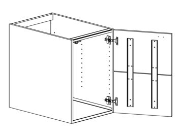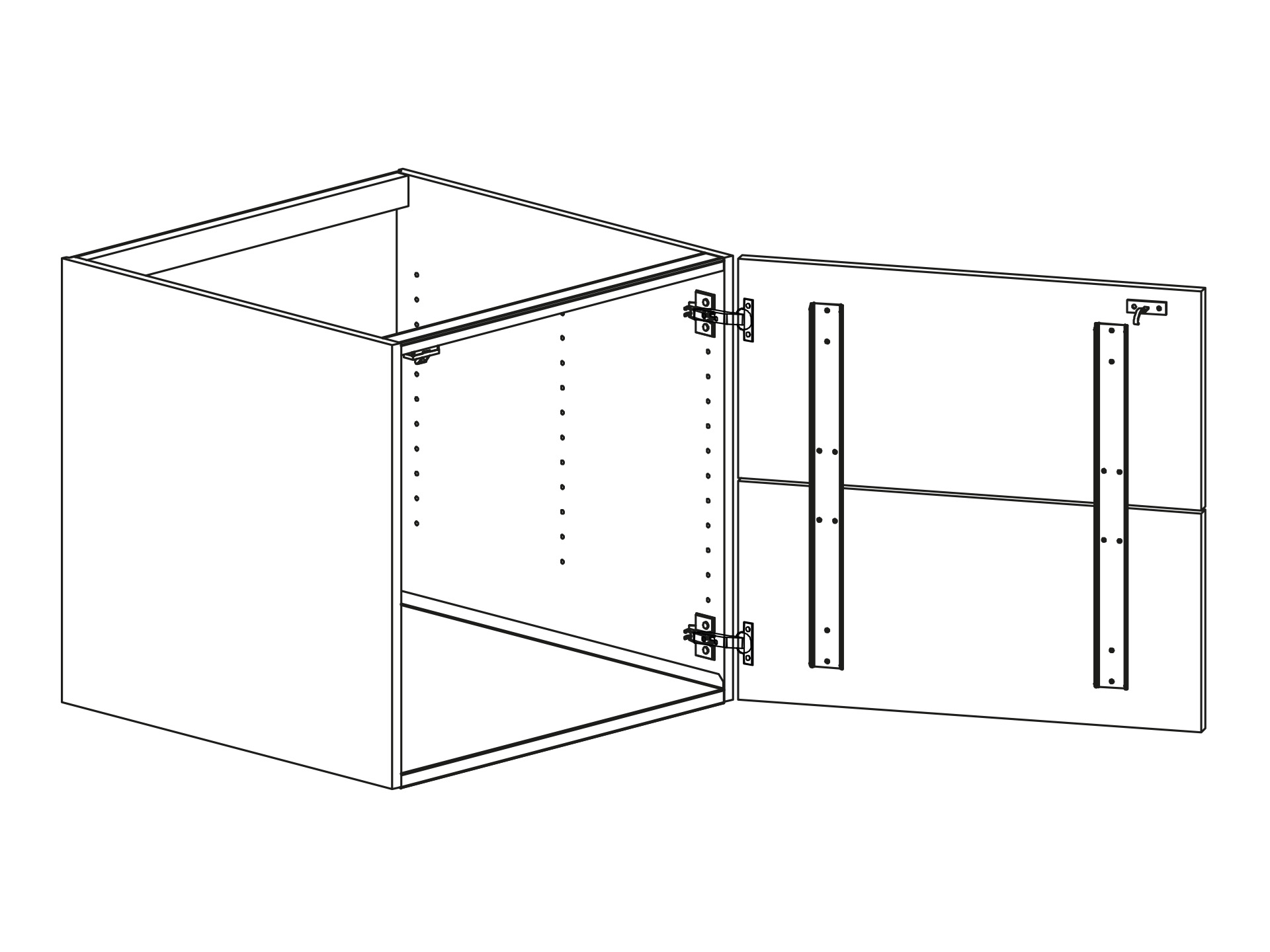 Diskbänkskåp med 2-delad lucka och hel botten, välj höger- eller vänsterhängd lucka (bredd 800 mm har parluckor). Välj front och utförande. Bottenskydd och barnspärr 39303 ingår. Skåpet finns i flera bredder.