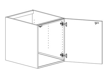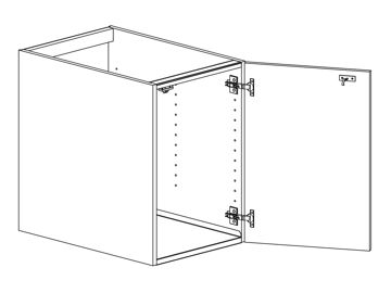Diskbänkskåp med lucka och hel botten, välj höger- eller vänsterhängd lucka (bredd 800 mm har parluckor). Välj front och utförande. Bottenskydd och barnspärr 39303 ingår. Skåpet finns i flera bredder.