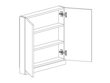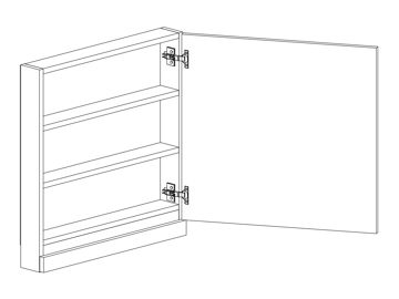 Fläkthylla för fläkt med enkellucka eller parluckor, två hyllor och fast front nedtill. Välj höger- eller vänsterhängd lucka. Välj front och utförande.
