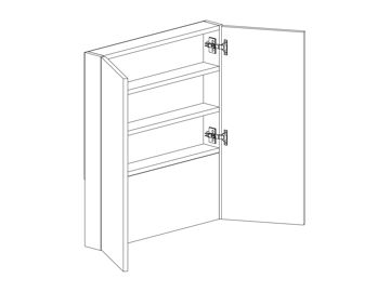 Fläkthylla för fläkt med enkellucka eller parluckor, hyllor och fast front nedtill. Välj höger- eller vänsterhängd lucka. Välj front och utförande.