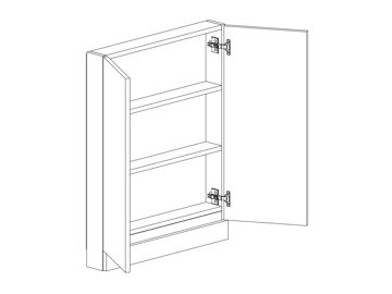 Fläkthylla för fläkt med enkellucka eller parluckor, hyllor och fast front nedtill. Välj höger- eller vänsterhängd lucka. Välj front och utförande.