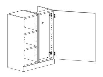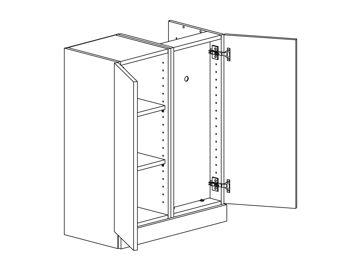 Fläktskåp för fläkt med enkellucka eller parluckor, hyllor och fast front nedtill. Finns även med indragen rygg. Välj höger- eller vänsterhängd lucka. Välj front och utförande.