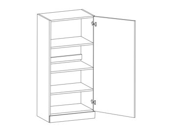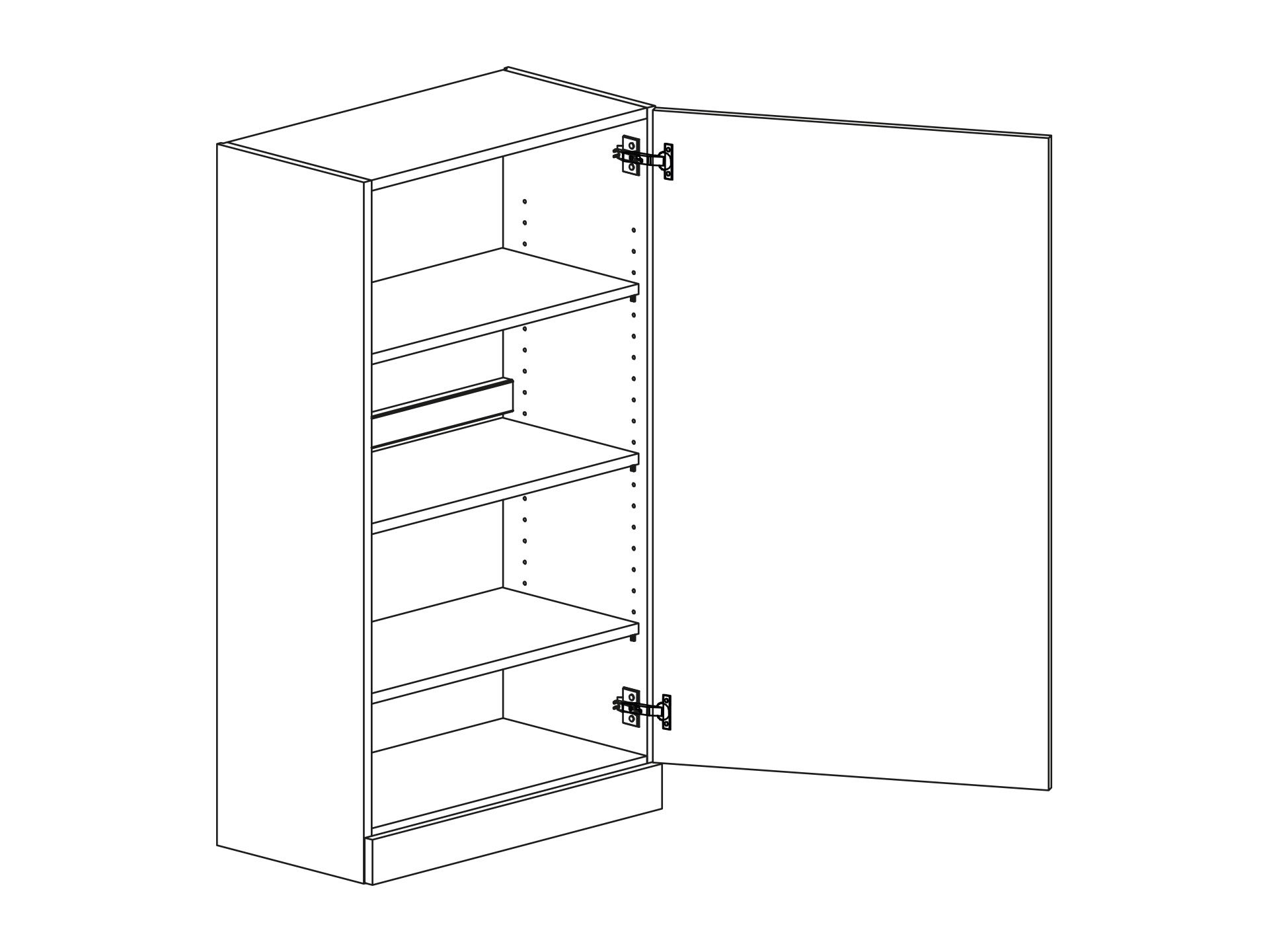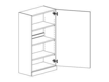 Fläktskåp för fläkt med enkellucka eller parluckor, tre hyllor och fast front nedtill. Välj höger- eller vänsterhängd lucka. Välj front och utförande.