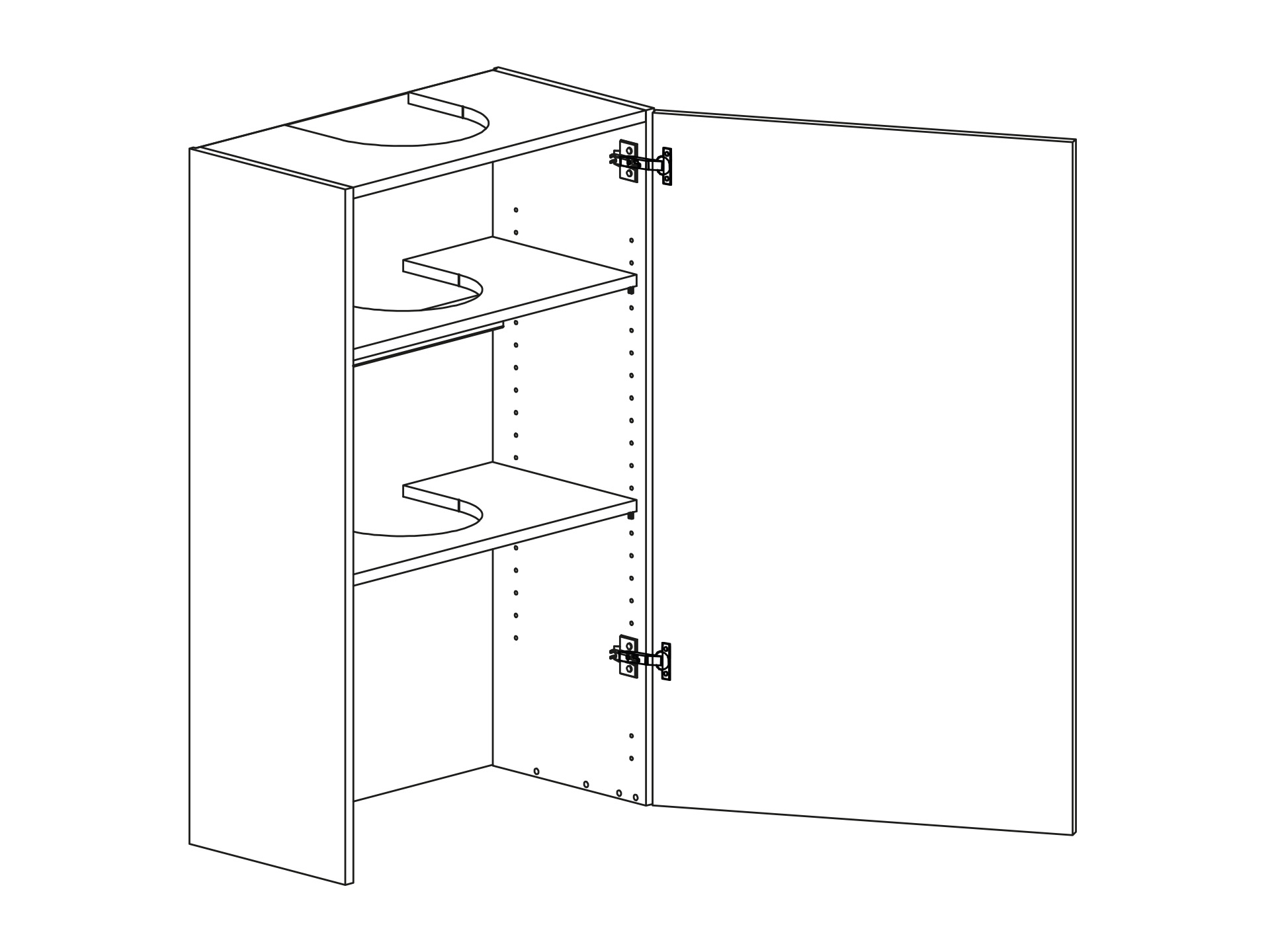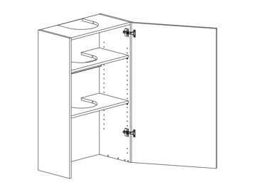 Fläktskåp för fläkt med enkellucka eller parluckor, utan botten. Välj höger- eller vänsterhängd lucka. Välj front och utförande.