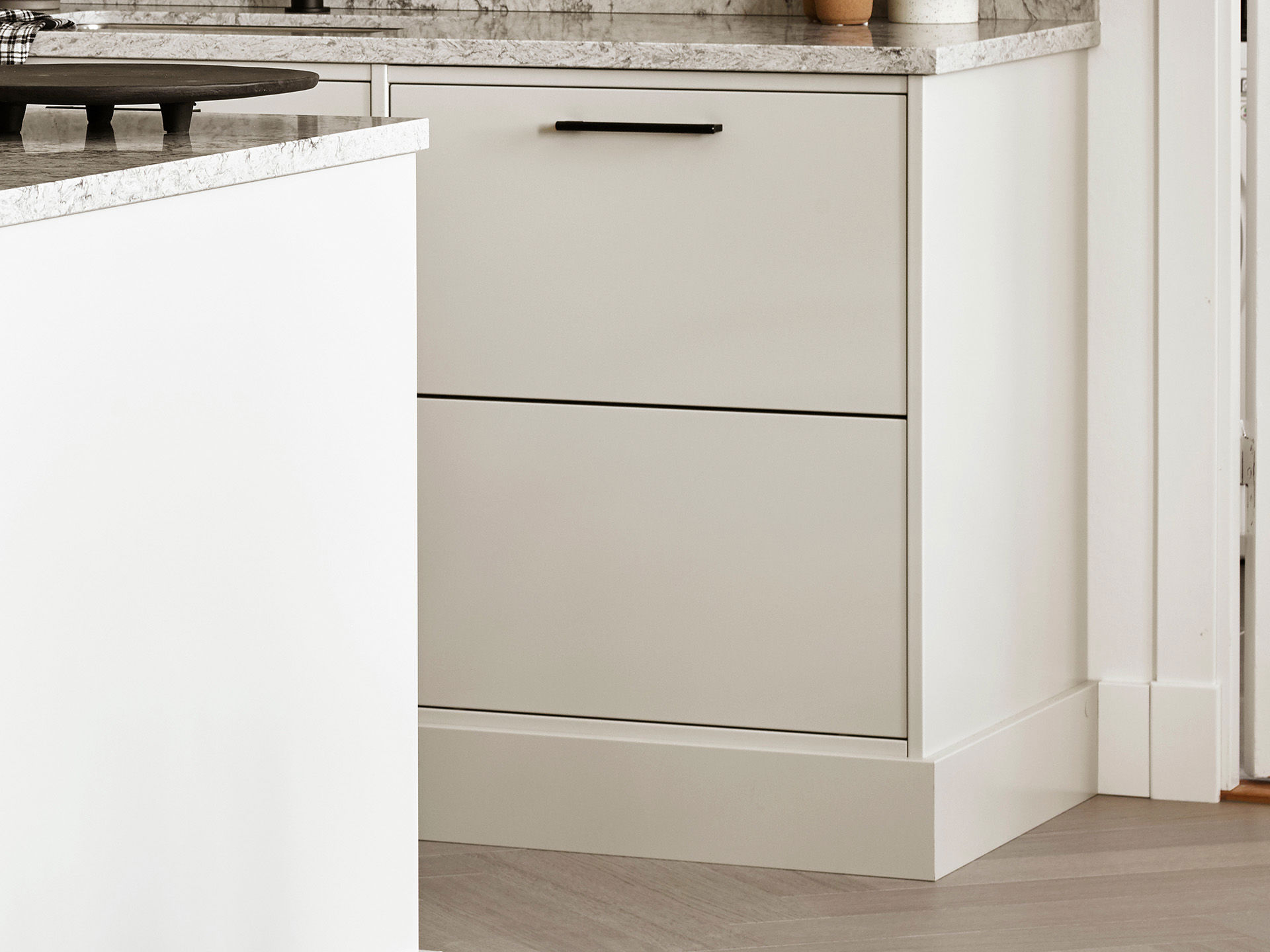 Framdragen sockel rak vid diskmaskin, välj utförande i vitt eller kulör.