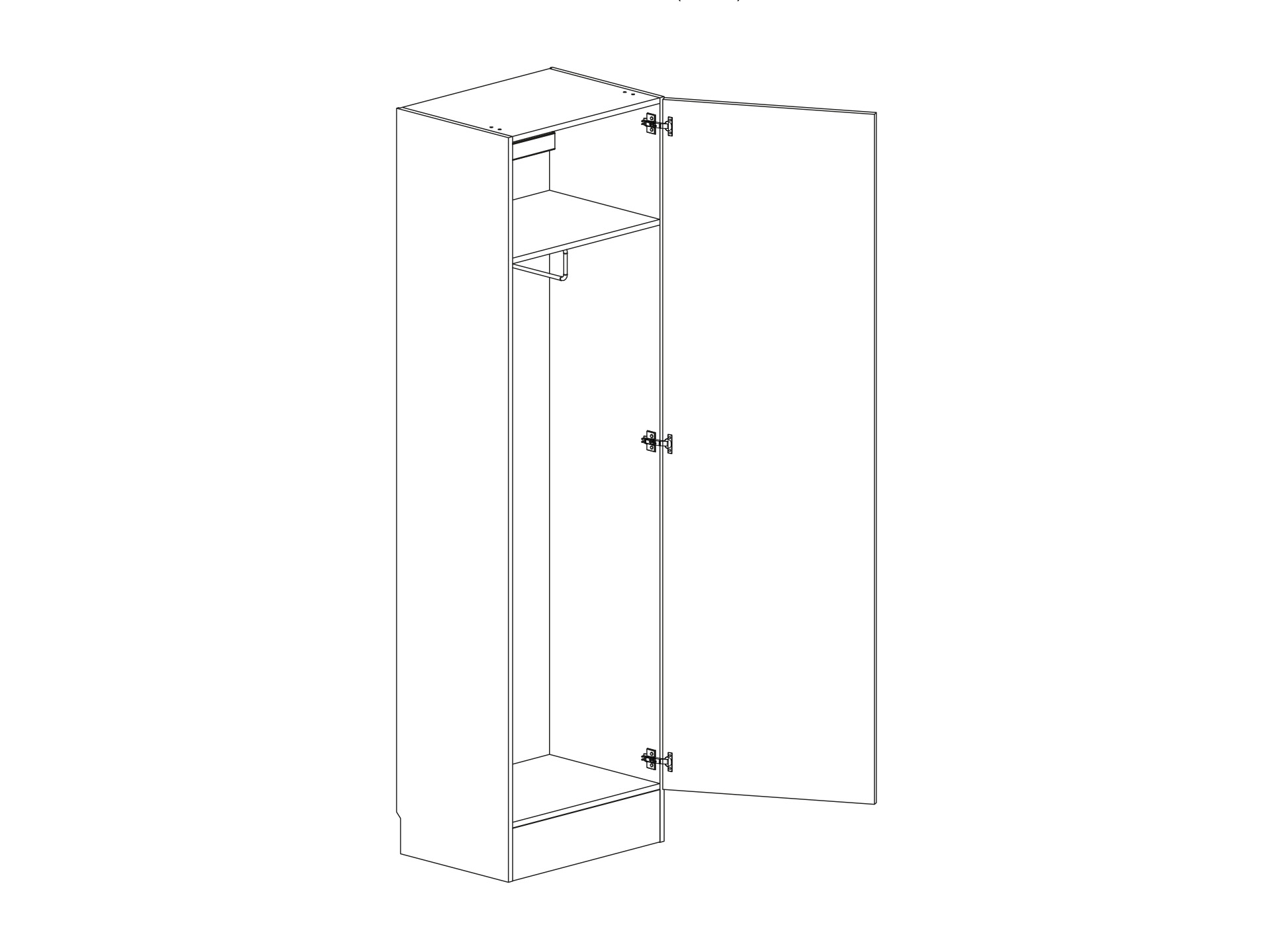Garderob (flyttbar) med lucka en hylla och klädstång, höjd 2100 djup 430