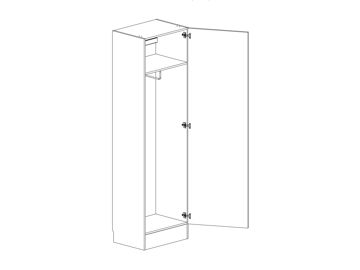 Garderob med lucka, en hylla och klädstång. Flyttbar (fast sockel). Välj höger- eller vänsterhängd lucka. Välj front och utförande.