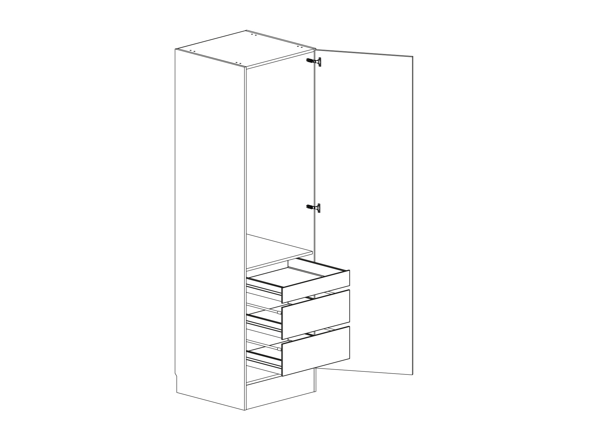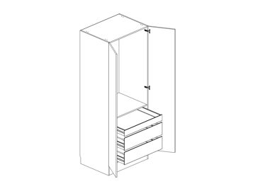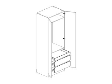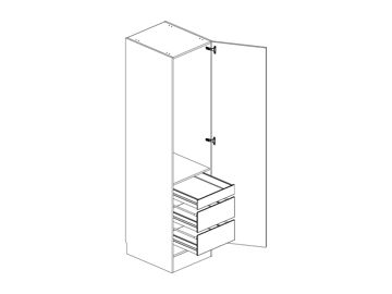 Garderob med lucka, tre fullutdragslådor, välj One- eller Scalalådor, en hylla och en klädstång. Flyttbar (fast sockel). Välj höger- eller vänsterhängd lucka (bredd 800 mm har parluckor). Välj front och utförande.