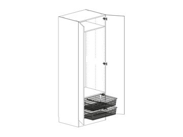 Garderob med lucka, två trådbackar, två hyllor och klädstång. Flyttbar (fast socke). Välj höger- eller vänsterhängd lucka (bredd 800 mm har parluckor). Välj front och utförande. Finns i flera bredder.