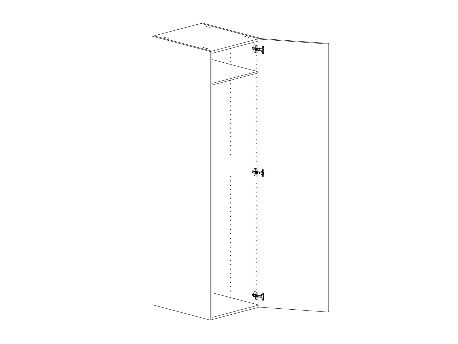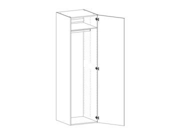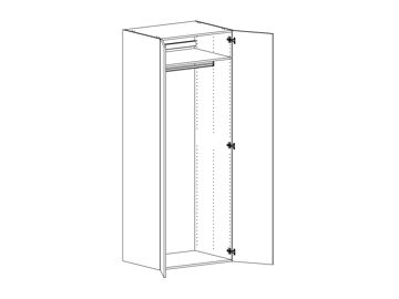 Garderob med lucka, en hylla och en klädstång. Välj höger- eller vänsterhängd lucka (bredd 800 mm har parluckor). Välj front och utförande.
