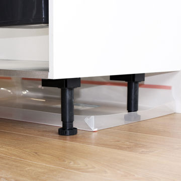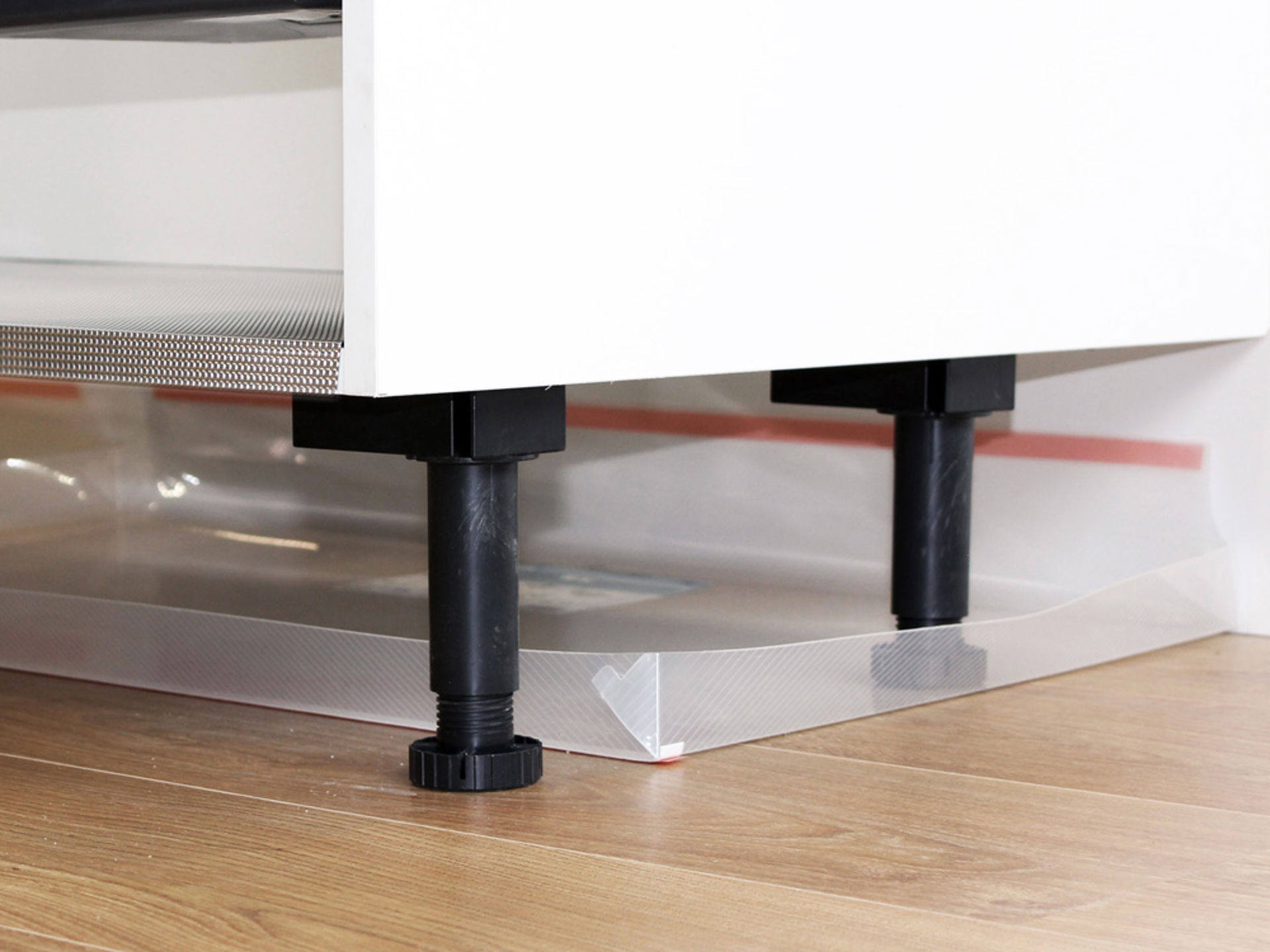 Skyddar golvet under skåpstommarna i köket. Golvskydd är ett slutet tråg som samlar upp vatten under diskbänksskåpet vid en läcka. Skydden kan länkas samman med ett underlägg som har utlopp via vår sargklämma AquaClip. Skydden samlar upp och leder fram vatten från ett eventuellt läckage så det blir synligt och du kan åtgärda läckan innan stor skada är skedd. Kan även användas som ett slutet tråg som samlar upp vattnet och leder ner i golvbrunn eller till annat översvämningsskydd.
