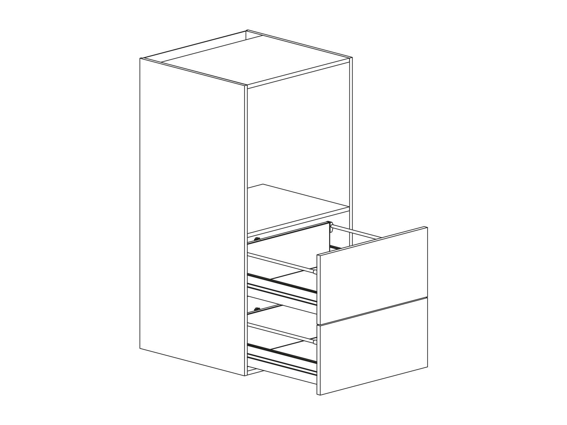 Skåp för inb. ugn öppn.590mm med två lådor (1182mm) 600mm