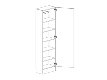 Högskåp (flyttbar) med lucka och fem hyllor, höjd 2100, djup 302