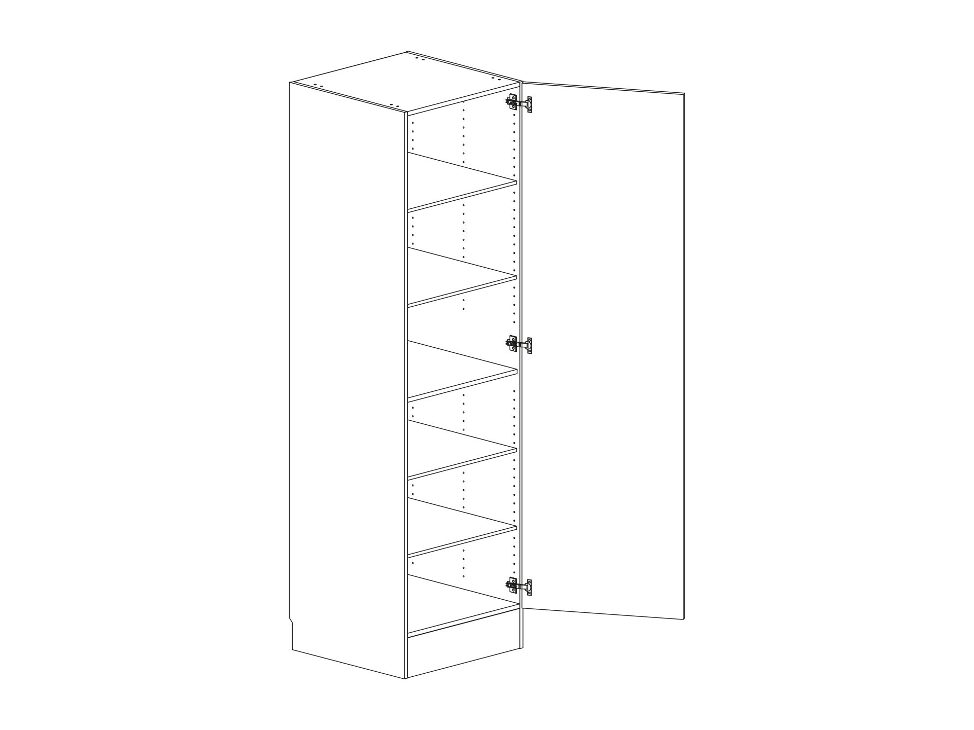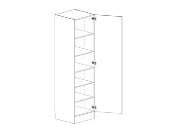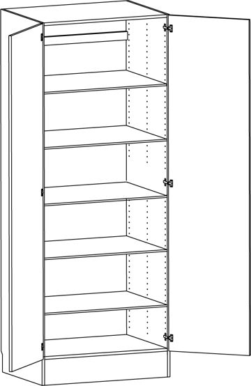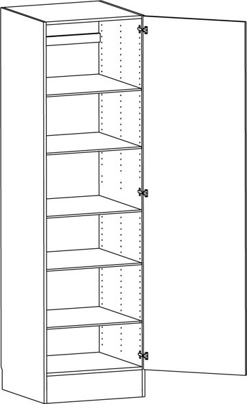 Högskåp med lucka och fem hyllor. Flyttbar (fast sockel. Välj höger- eller vänsterhängd lucka (skåp i bredd 800 mm har parluckor). Välj front och utförande. Högskåp med fast sockel (flyttbar) kan ej fås med frontanpassning.