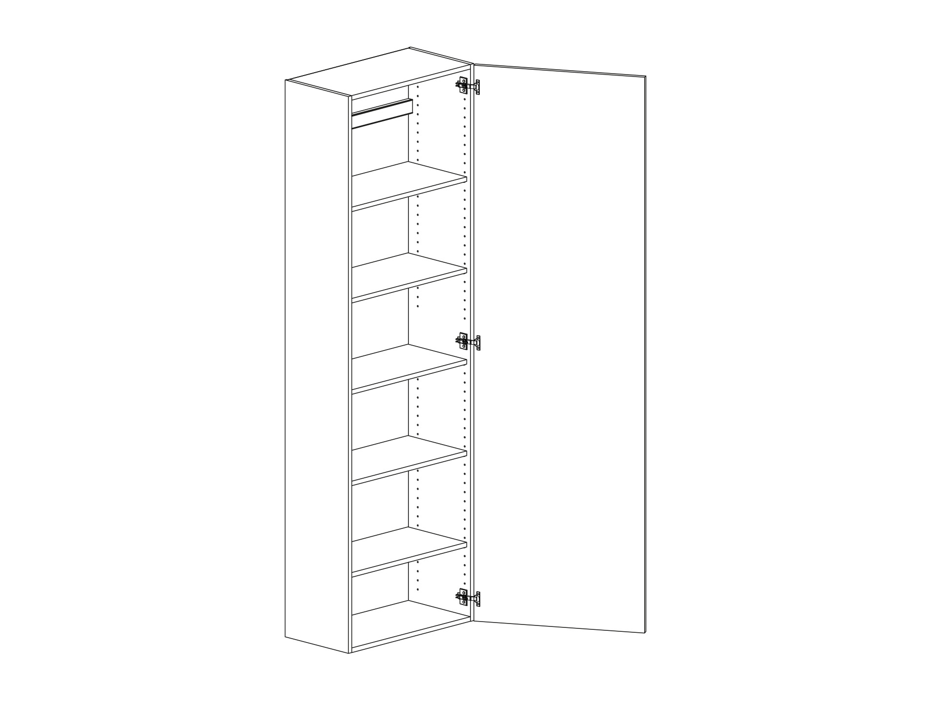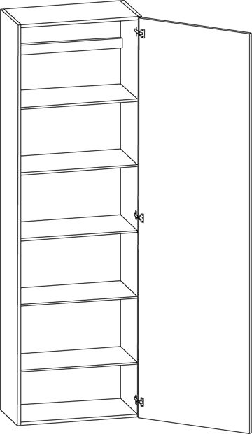 Högskåp med lucka och fem hyllor, välj höger- eller vänsterhängd lucka (bredd 800 mm har parluckor). Välj front och utförande.