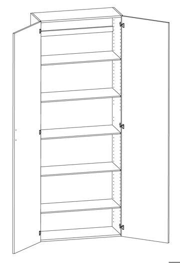 Högskåp med lucka och fem hyllor, höjd 1950/2100 djup 302