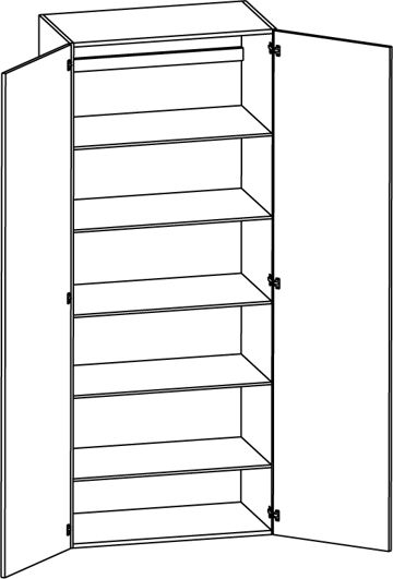 Högskåp med lucka och fem hyllor, höjd 1950/2100 djup 430