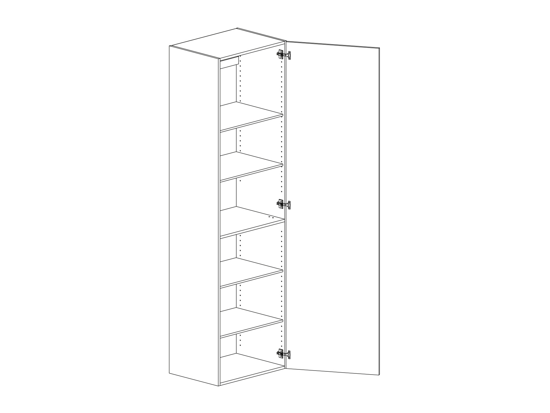 Högskåp med lucka och fem hyllor, välj höger- eller vänsterhängd lucka (bredd 800 mm har parluckor). Välj front och utförande.