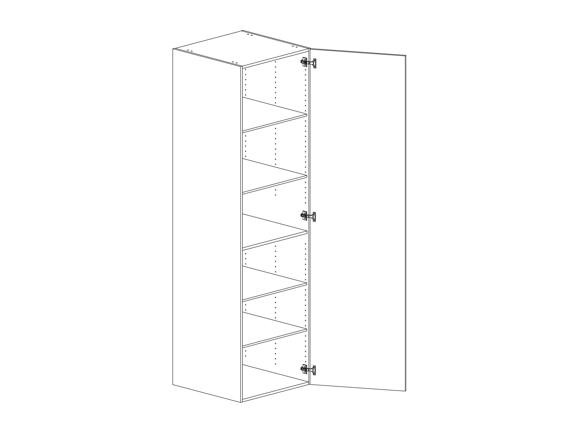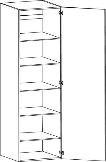 Högskåp med lucka och fem hyllor, välj höger- eller vänsterhängd lucka (bredd 800 mm har parluckor). Välj front och utförande.