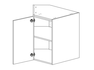 Bänkskåp för hörn diagonalt med lucka och en hylla, välj höger- eller vänsterhängd lucka. Välj front och utförande.