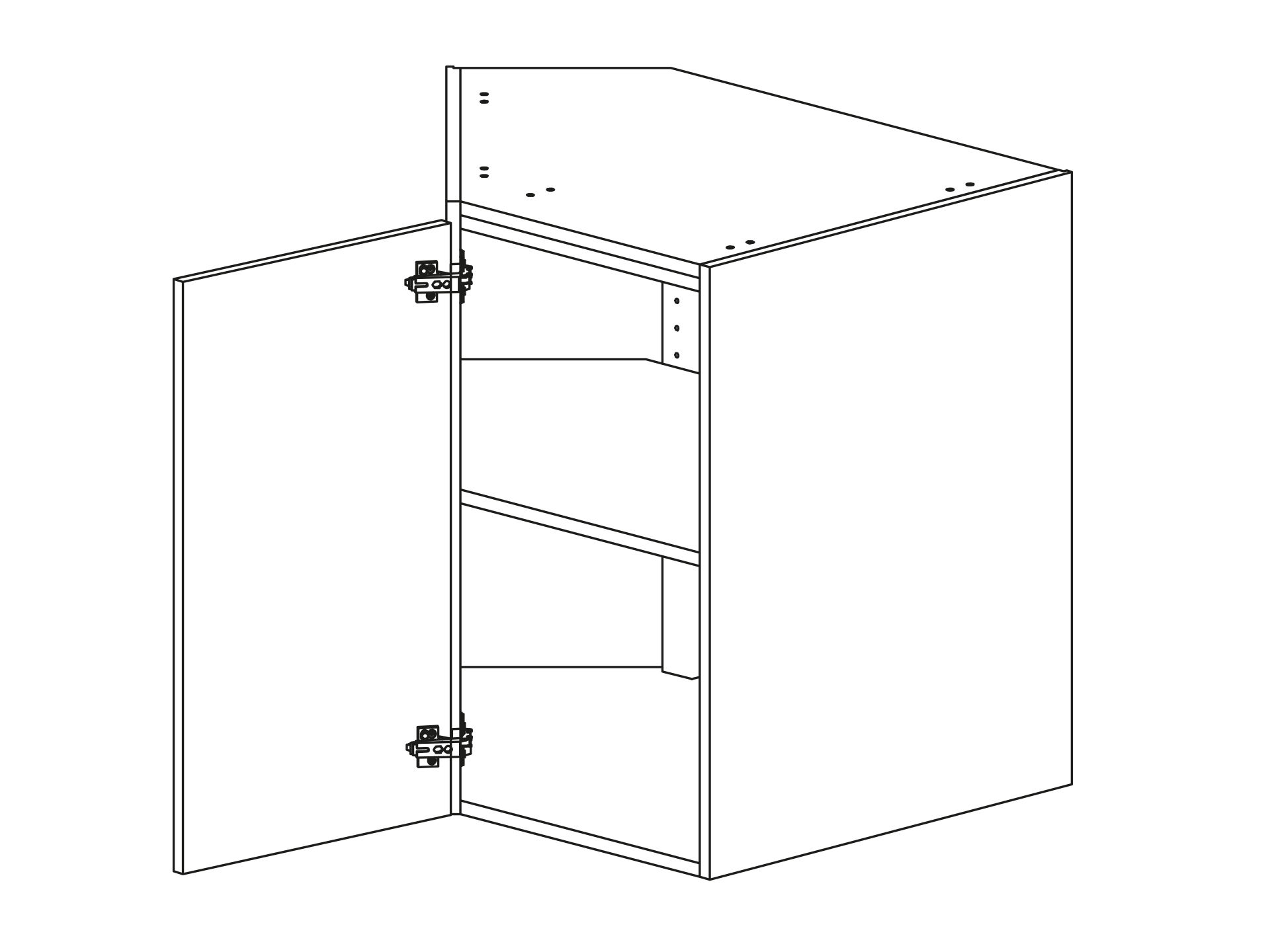 Hörnbänkskåp diagonal med lucka och en hylla, höjd 720 djup 580