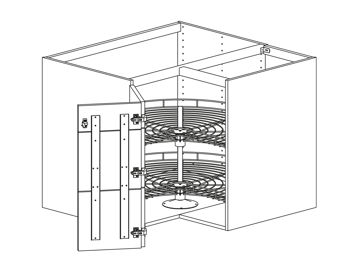 Hörnbänkskåp med viklucka 3-del och karusell Isop, 900x900, höjd 720 djup 580