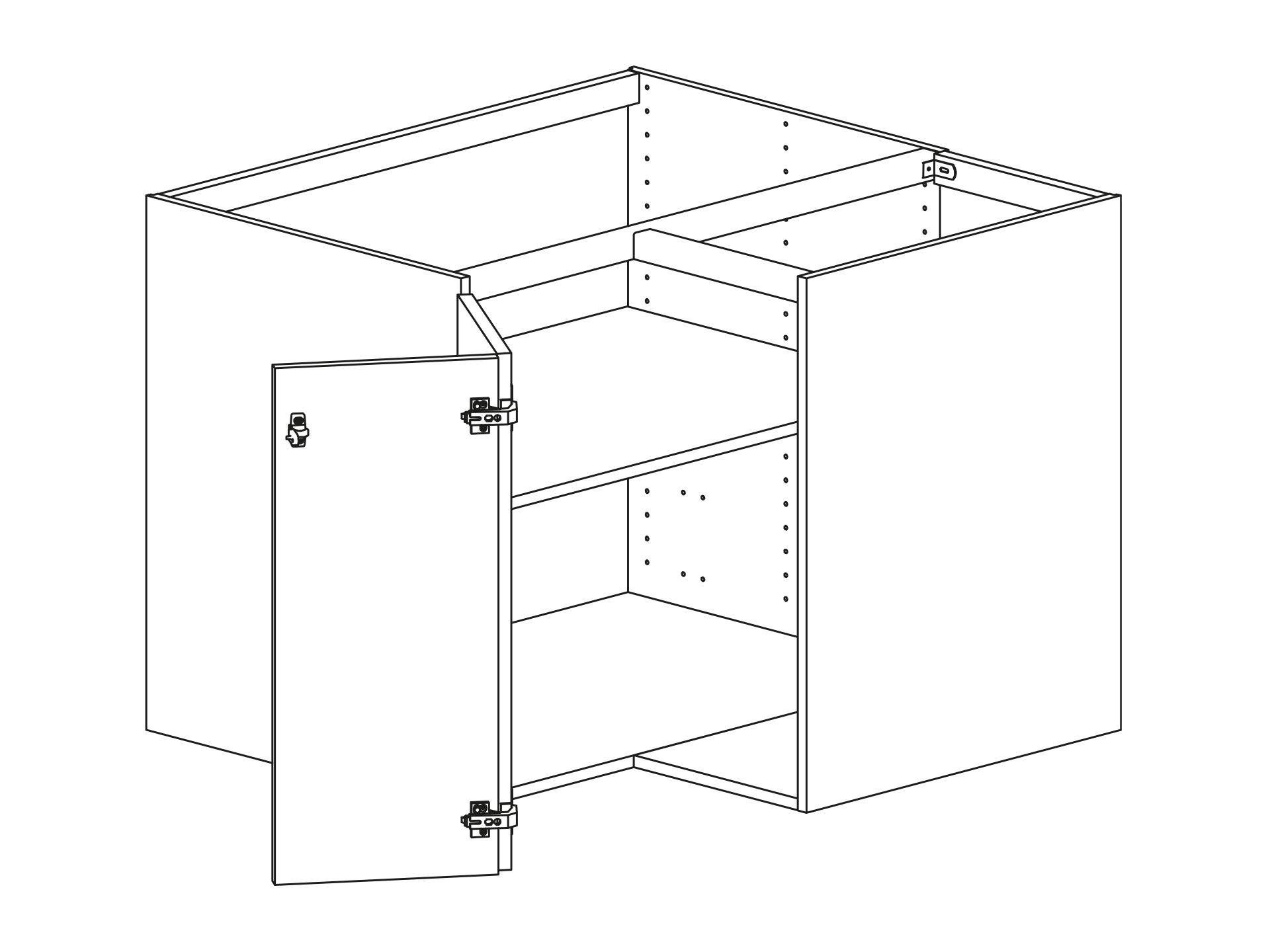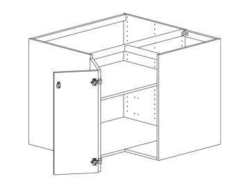 Bänkskåp för hörn i L-vinkel, viklucka och en hylla. Välj front och utförande, (luckor med grepplist kan ej användas).
