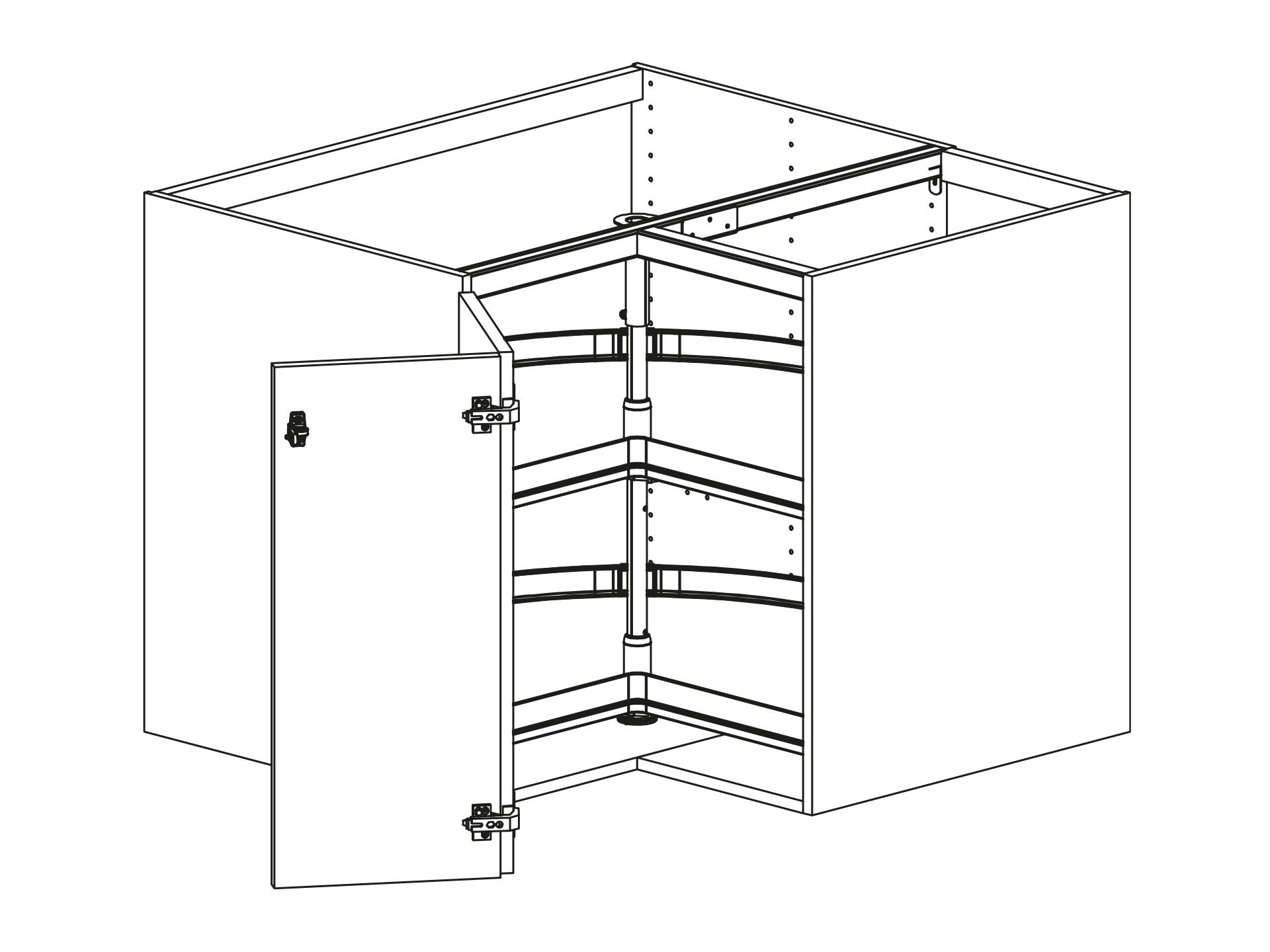 Hörnbänkskåp med viklucka och karusell Curry, 900x900, höjd 720 djup 580