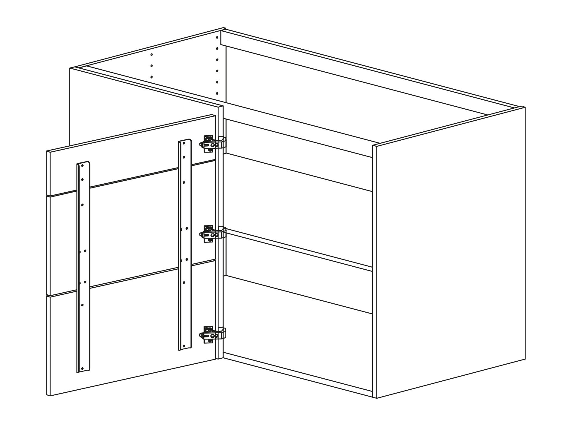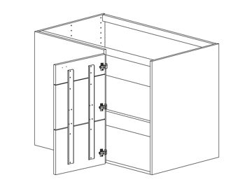 Bänkskåp för hörn rakt med skärm, 3-delad lucka och en hylla, välj höger- eller vänsterhängd lucka. Välj front och utförande.