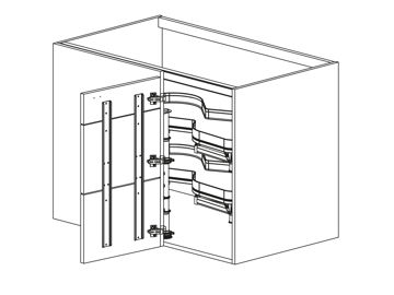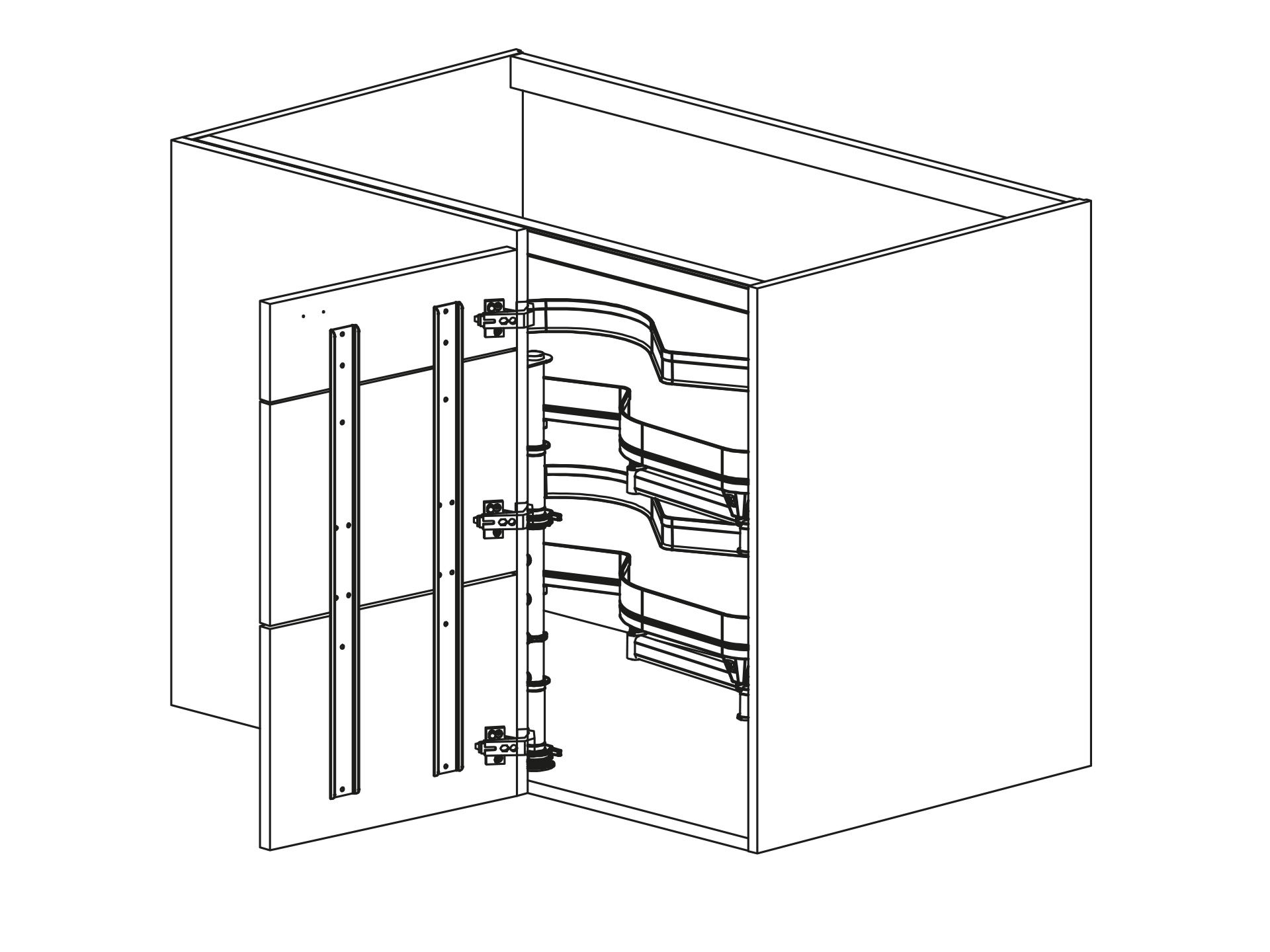 Hörnbänkskåp rakt med utdrag Cajun 1000mm, tredelad lucka