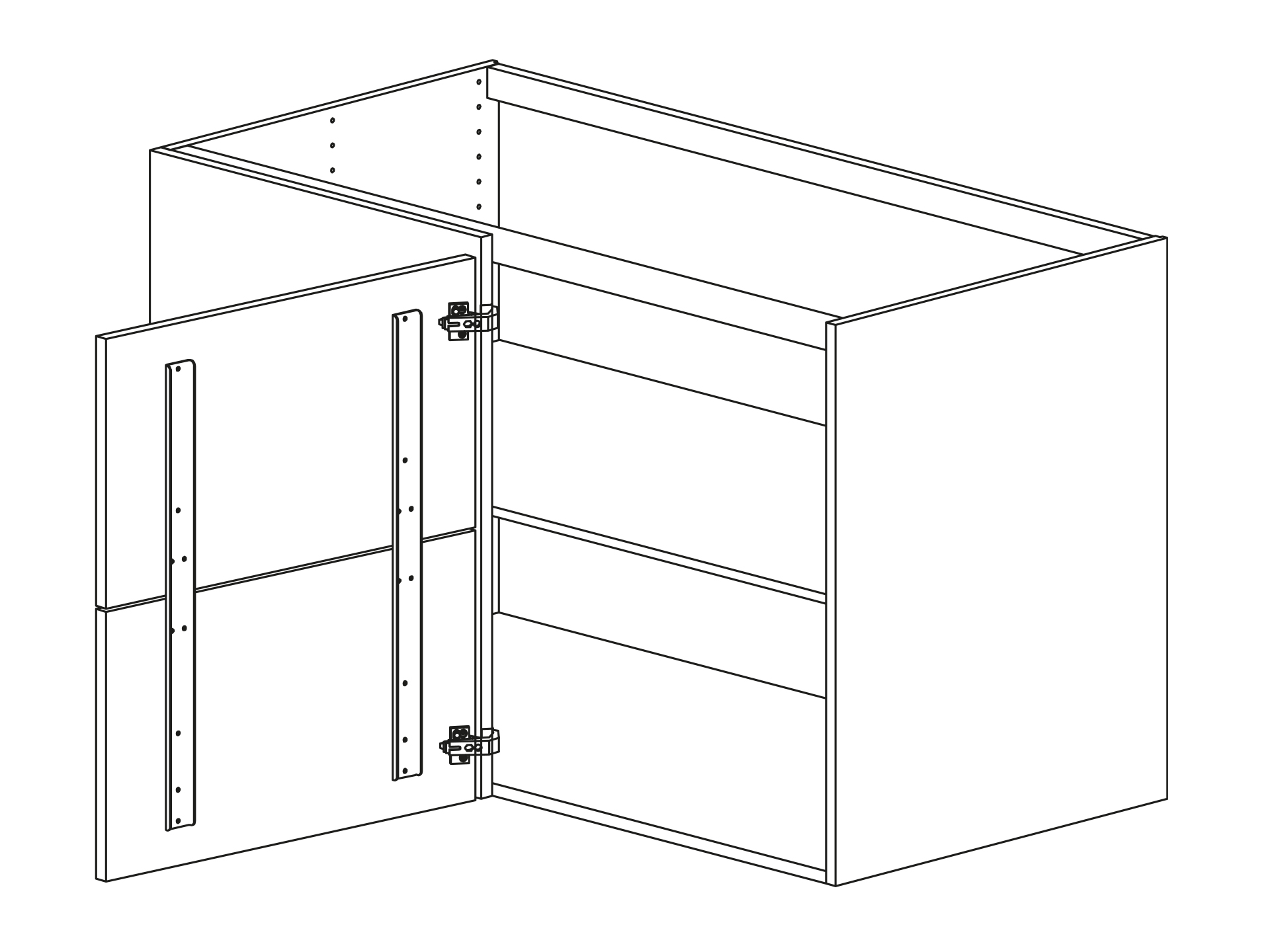 Hörnbänkskåp rakt med lucka DUO och en hylla, höjd 720 djup 580