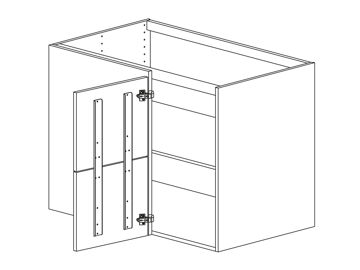 Bänkskåp för hörn rakt med skärm, DUO-frontlucka och en hylla, välj höger- eller vänsterhängd lucka. Välj front och utförande.