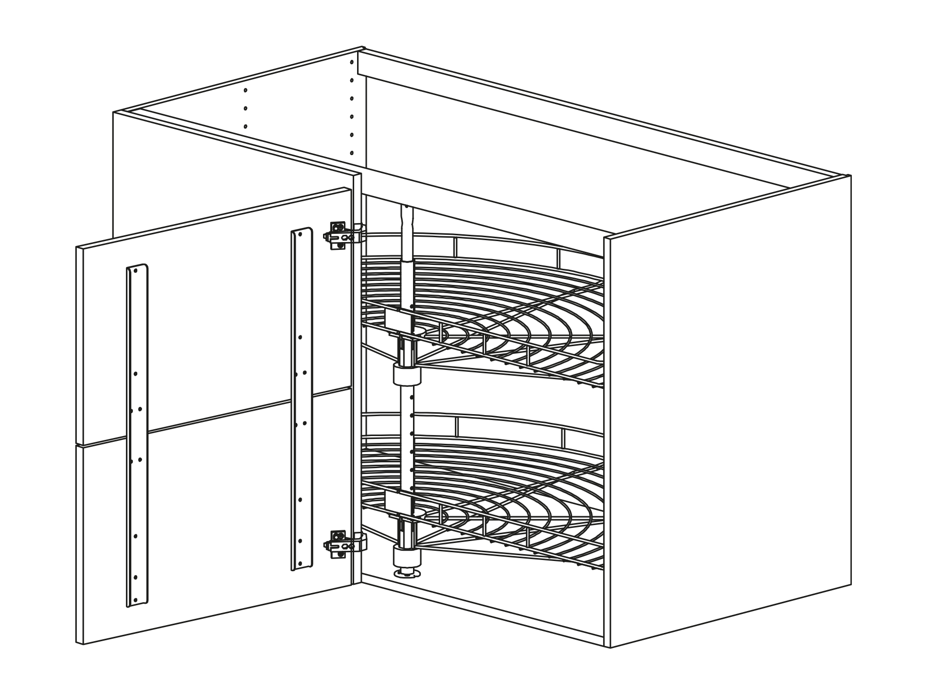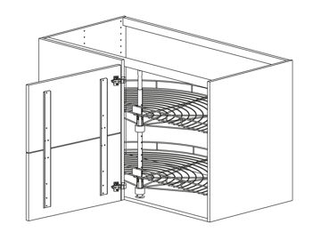 Hörnbänkskåp rakt med lucka DUO och karusell Humle, höjd 720 djup 580
