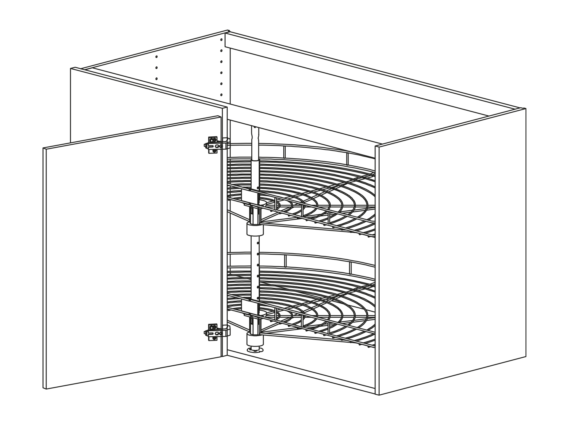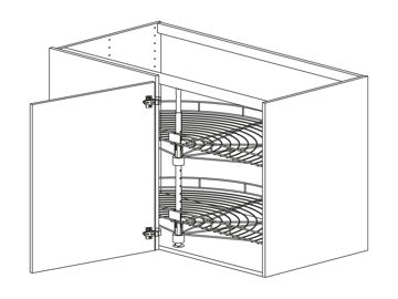 Hörnbänkskåp rakt med lucka och karusell Humle, höjd 720 djup 580
