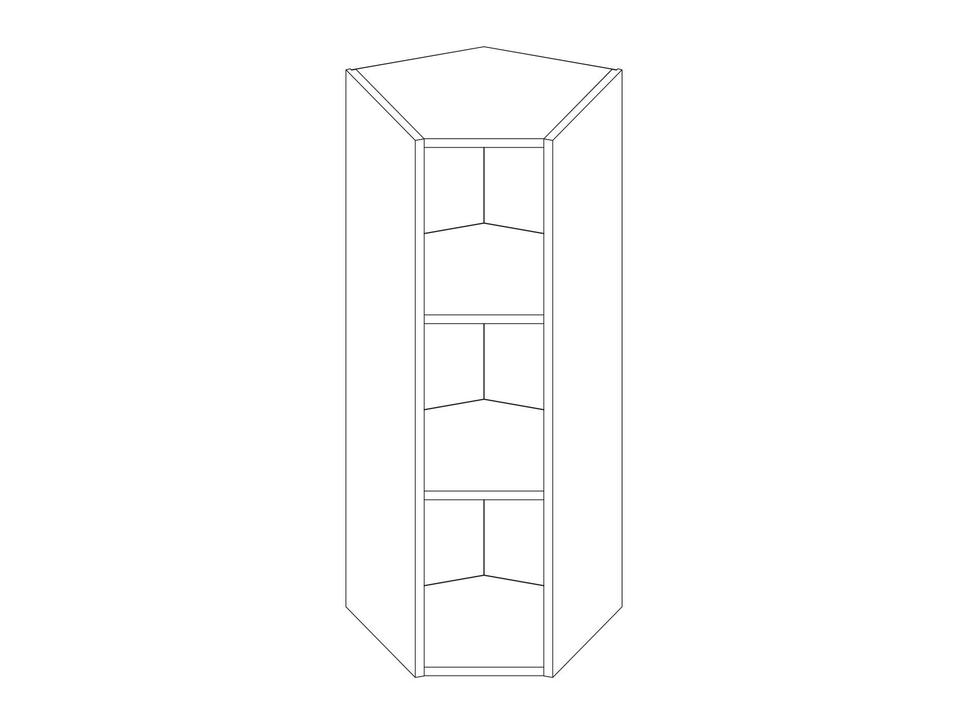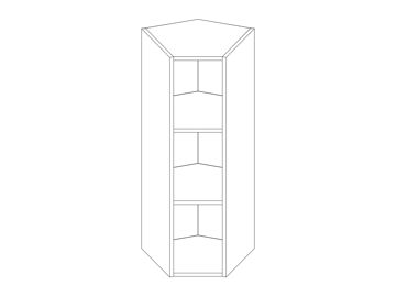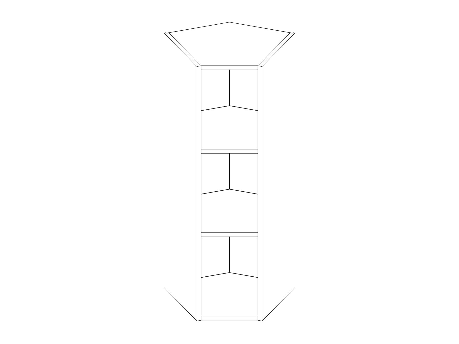 Hörnhylla diagonal för placering i hörn som öppet hörnväggskåp, utan lucka med två hyllor. Välj utförande i vitt, kulör eller trä.